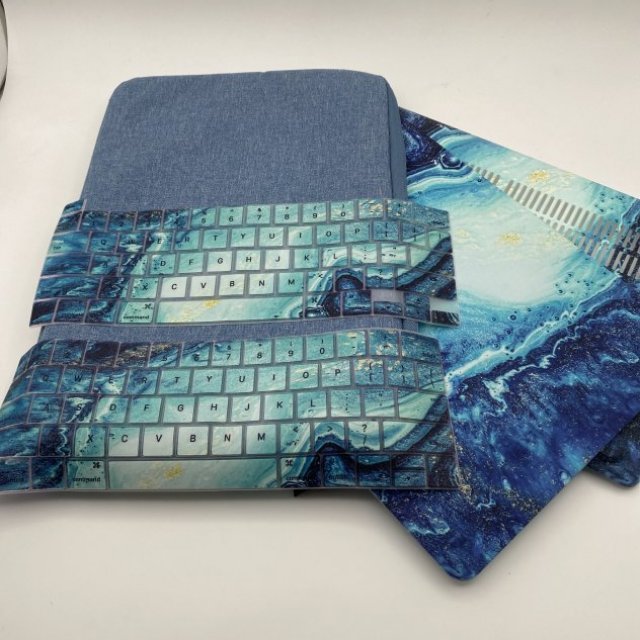 Each MMDW silicone skin is heat molded to ensure a perfect fit then each color is paints taking hand screened using silicone paint which is heat fuses into the silicone keyboard skin to become one, making it durable, crack proof and washable