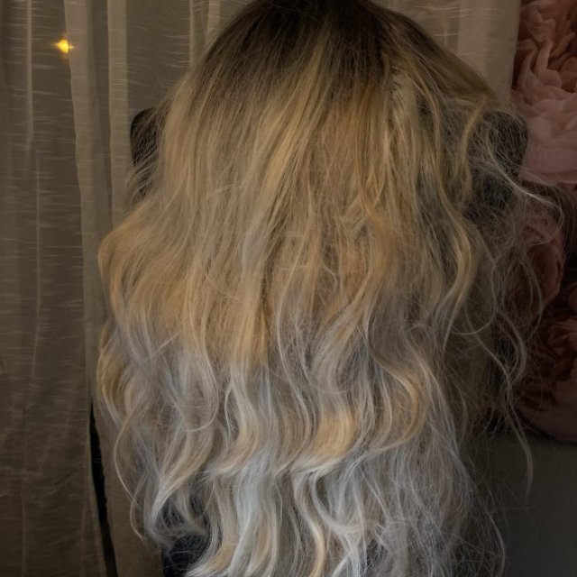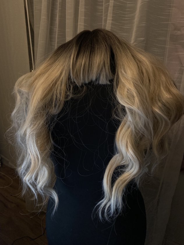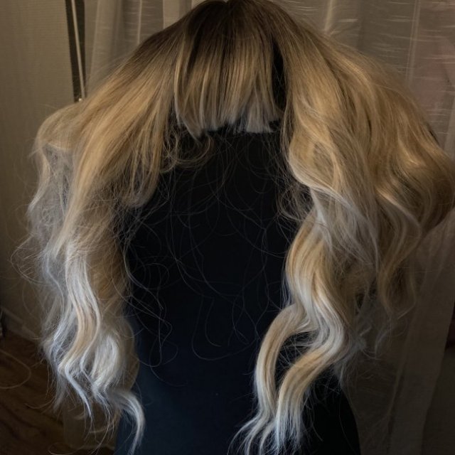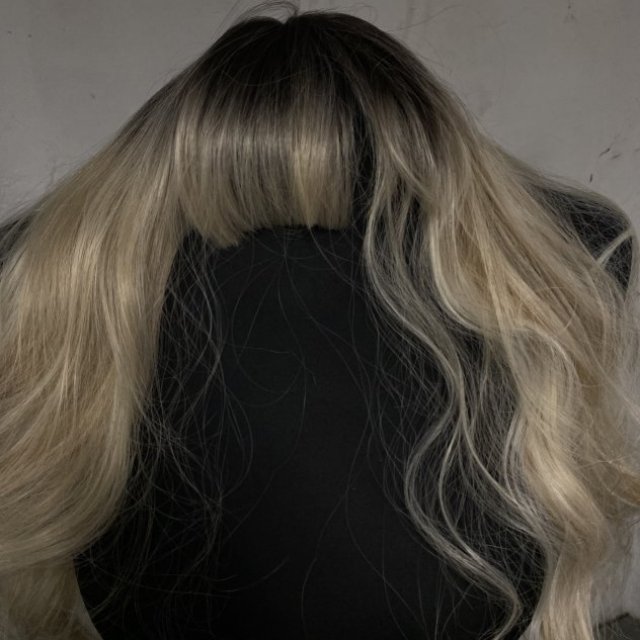 This long blonde wig features soft waves, darker roots, and straight-cut bangs for a natural look. The hair has a lightweight feel and works well for daily wear, costumes, photos, or events. Easy to style and comfortable to wear for extended periods. A good option for changing your look without committing to permanent color.