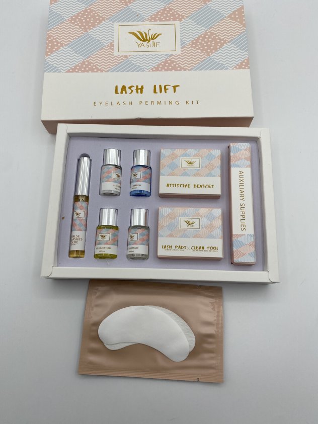 This Yasije lash lift kit includes perming solutions, adhesive, cleanser, nourishment oil, silicone pads, and assistive tools for lifting natural lashes. Designed to create a semi-permanent curl effect without extensions. Suitable for home use or light professional use. A convenient all-in-one kit for enhancing natural lashes with a lifted look that can last several weeks.