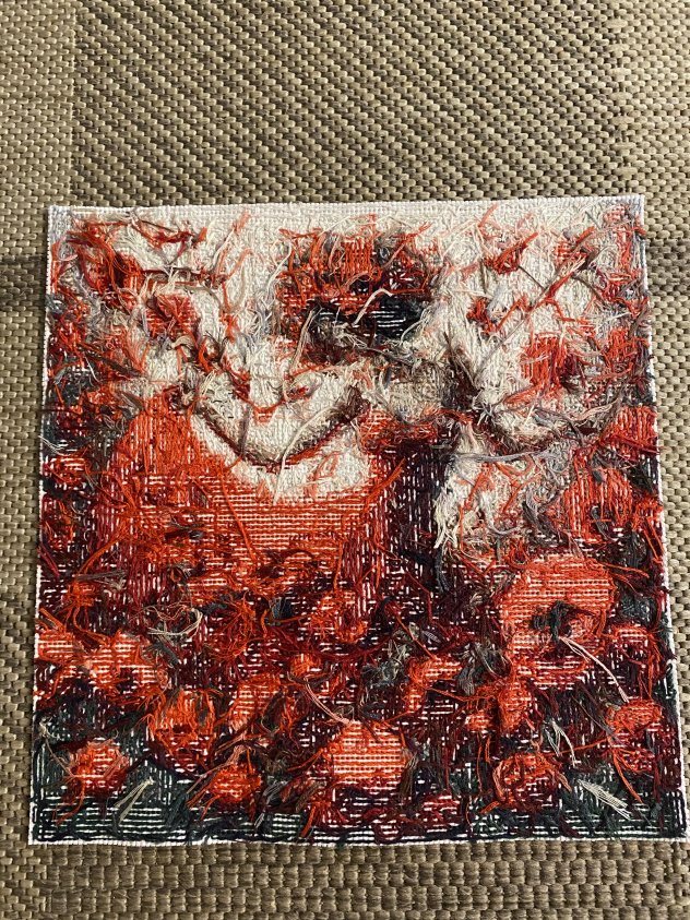 Each stitch was done by hand, making this a unique one-of-a-kind artwork that cannot be mass produced. Ideal as a gift or statement decor piece.