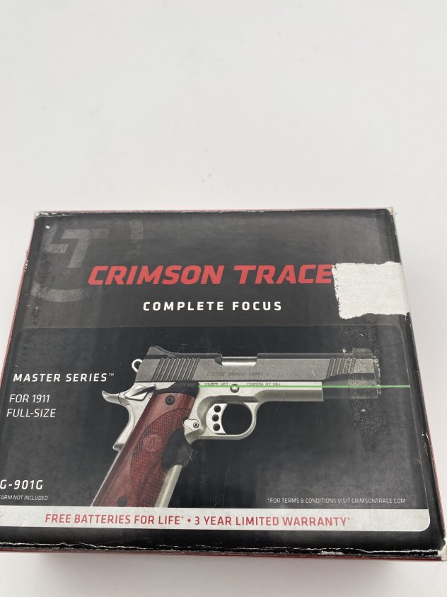 This Crimson Trace Master Series laser sight is made for full-size 1911 pistols and features a bright green laser for quick target visibility. It’s built solid, fits the grip area cleanly, and activates naturally when held. Great for range use, training, or adding a reliable laser upgrade to your 1911 setup. Comes in the original box; firearm not included.