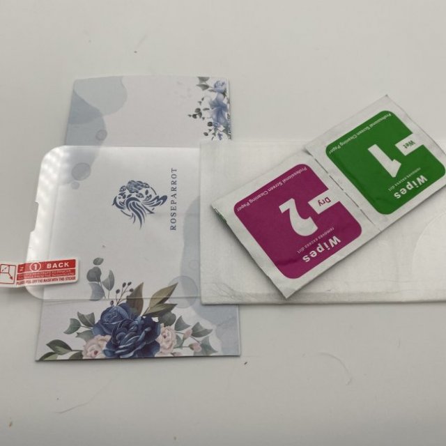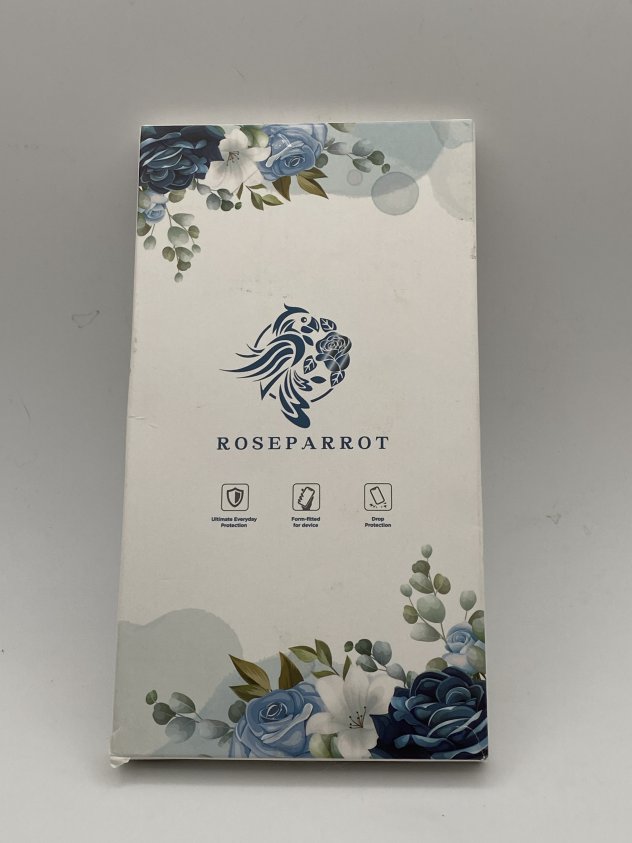 RoseParrot transparent phone case kit featuring a slim clear case with floral design accents. Includes screen protector, cleaning wipes, and accessories for easy installation. Lightweight design helps protect against scratches and minor drops while keeping the phone’s original look visible. Ideal for everyday use with a clean, stylish finish.