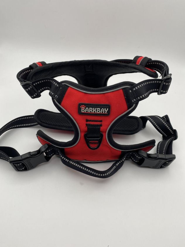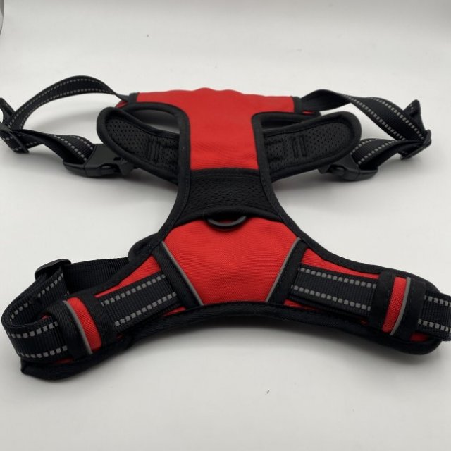 XL size This dog harness is soft, lightweight, and easy to put on, making it comfortable for daily use. The adjustable straps help get a secure fit without pulling on your dog’s neck. Reflective stitching adds extra visibility during evening or early morning walks. It feels sturdy and well made, great for regular walks, short trips, and casual outdoor use.