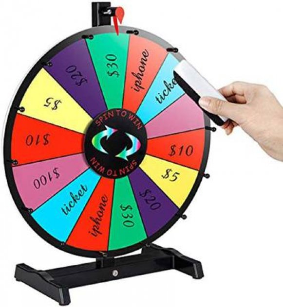 Heavy Duty Base - This 24" tabletop prize wheel features steel frame with heavy duty base for balance, stable enough with average spins, will not break or tip over