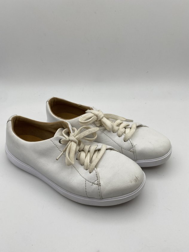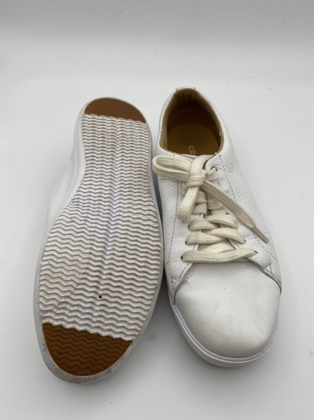 These Cole Haan women’s sneakers feature a smooth white leather upper with a classic low-top lace-up style. Designed for comfort and versatility, they work well for daily wear, walking, or casual outfits. The cushioned interior and flexible sole make them easy to wear throughout the day. A timeless sneaker that pairs effortlessly with jeans, dresses, or casual looks.